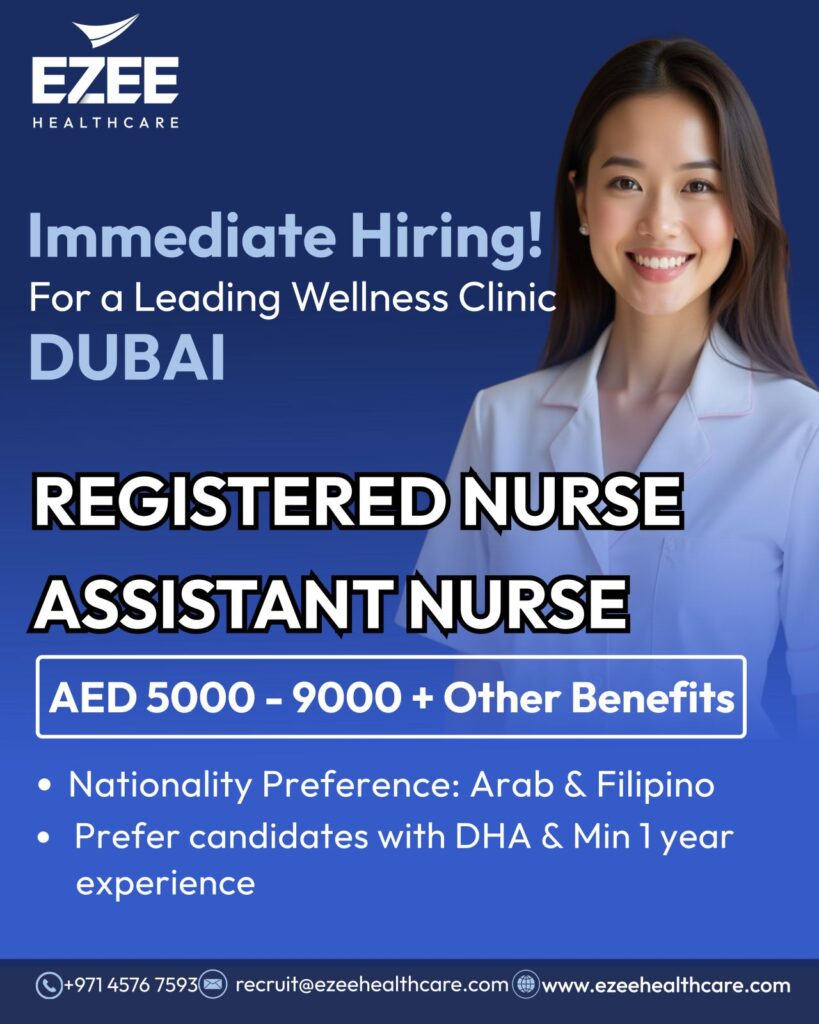 📢 Hiring: Registered Nurse &Assistant Nurse – Dubai, UAE