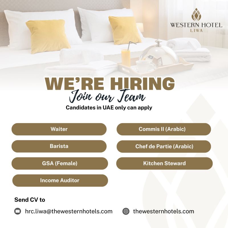 Western Hotels Liwa CAREERS:APPLY NOW FOR THE LATEST VACANCIES