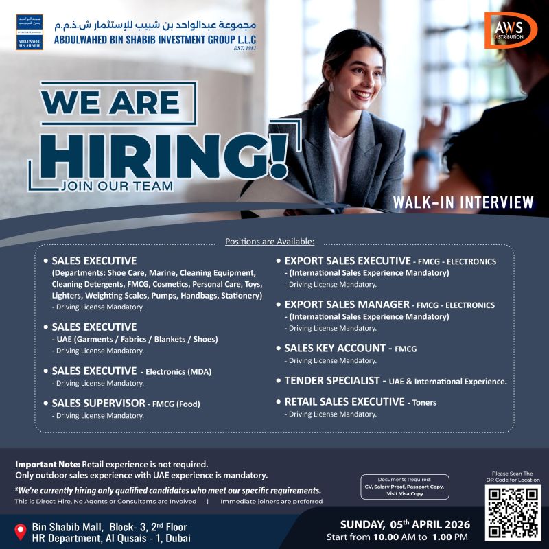 • Export Sales: Positions available for both Executive and Manager levels (FMCG – Electronics). International sales experience is mandatory.