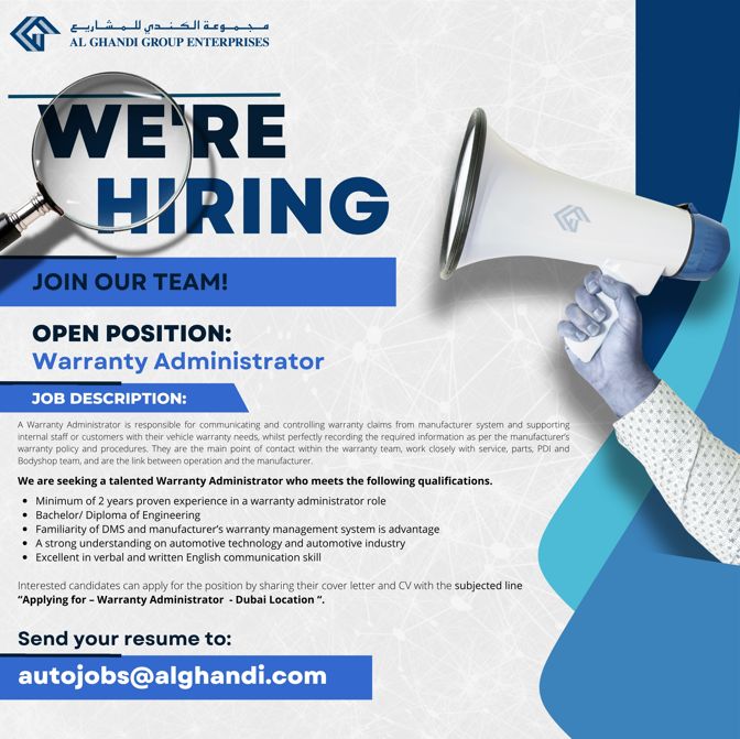 - Experience: Minimum of 2 years in a proven warranty administrator role.