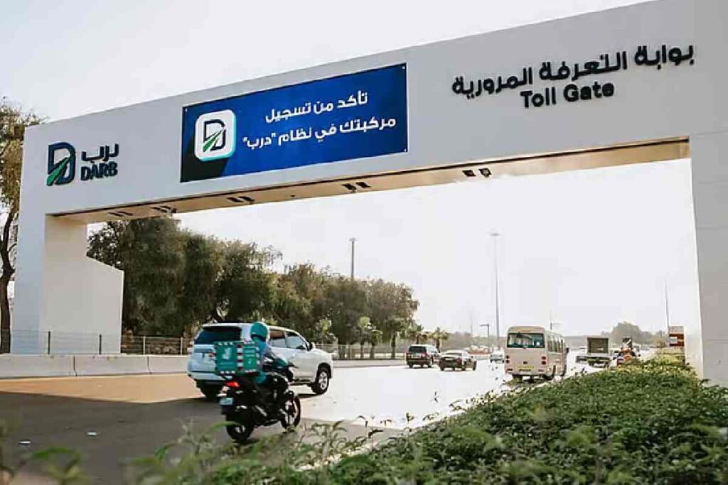 ദർബ് ടോൾ സംവിധാനത്തിന്റെ പൂർണ്ണരൂപം: അൽ മഖ്ത ഗേറ്റ്: അൽ മഖ്ത പാലം, റബ്ദാൻ ഗേറ്റ്: മുസഫ പാലം, സാസ് അൽ നഖൽ ഗേറ്റ്: ഷെയ്ഖ് സായിദ് പാലം, അൽ സാദിയാത്ത് ഗേറ്റ്: ഷെയ്ഖ് ഖലീഫ പാലം, ഗന്തൂത്ത് ഗേറ്റ്: ഷെയ്ഖ് മക്തൂം ബിൻ റാഷിദ് സ്ട്രീറ്റ് (E11), അൽ ഖുർം ഗേറ്റ്: വാഹത് അൽ കറാമ സ്ട്രീറ്റ് / ഷെയ്ഖ് സായിദ് സ്ട്രീറ്റ്. ഒരു തവണ കടന്നുപോകുന്നതിന് 4 ദിർഹം ആണ് നിരക്ക്. രജിസ്റ്റർ ചെയ്യാത്ത വാഹനങ്ങൾക്ക് ആദ്യ തവണ 100 ദിർഹം പിഴ ലഭിക്കും (തുടർന്നുള്ള ലംഘനങ്ങൾക്ക് തുക വർദ്ധിക്കും). ബാലൻസ് കുറവാണെങ്കിൽ ഓരോ യാത്രയ്ക്കും 50 ദിർഹം വീതം പിഴ ഈടാക്കും. ഗുരുതരമായ നിയമലംഘനങ്ങൾക്ക് 10,000 ദിർഹം വരെ പിഴ ലഭിക്കാം. അർഹരായ വ്യക്തികളുടെ ഒരു വാഹനത്തിന് ടോൾ ഇളവ് ലഭിക്കും: സീനിയർ സിറ്റിസൺസ്, കുറഞ്ഞ വരുമാനമുള്ളവർ, വിരമിച്ച പൗരന്മാർ, നിശ്ചയദാർഢ്യമുള്ളവർ, പൊതുഗതാഗത വാഹനങ്ങൾ, ആംബുലൻസ്, മോട്ടോർ സൈക്കിളുകൾ.