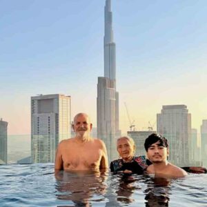 മുത്തശ്ശനെയും മുത്തശ്ശിയെയും കൂട്ടി ദുബായ് ഇൻഫിനിറ്റി പൂളിലേക്ക്, കാഴ്ചക്കാരുടെ ഹൃദയം കവർന്ന് ഇന്ത്യക്കാരനായ കൗമാരക്കാരൻ