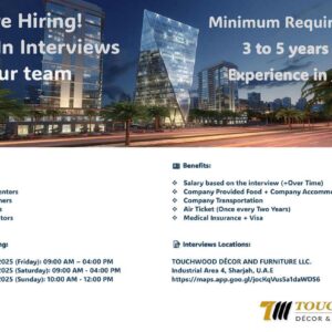Touchwood Decor & Furniture CAREER : APPLY NOW FOR THE LATEST VACNCIES Touchwood, founded in 1976 as part of the Bukhatir Group, quickly…